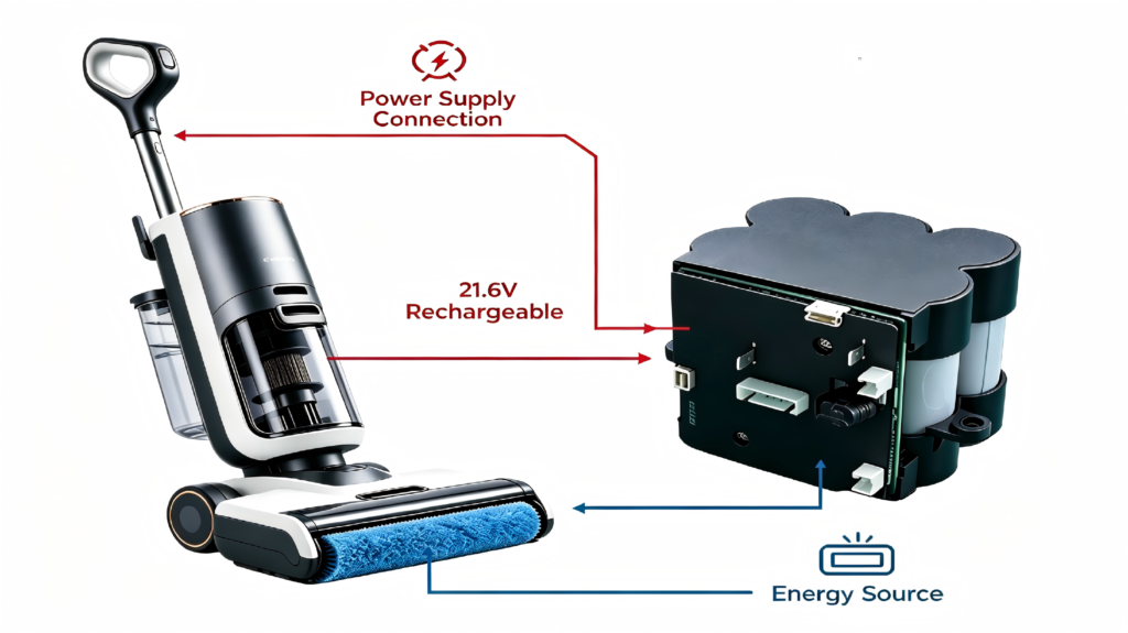 Q: What is the difference between 6S1P and other configurations? A: 6S1P means 6 cells connected in series (6S) with 1 parallel group (1P). This configuration delivers 21.6V nominal voltage — ideal for high-power floor washer motors and water pumps. It provides significantly more power than lower-voltage configurations while maintaining a compact size.